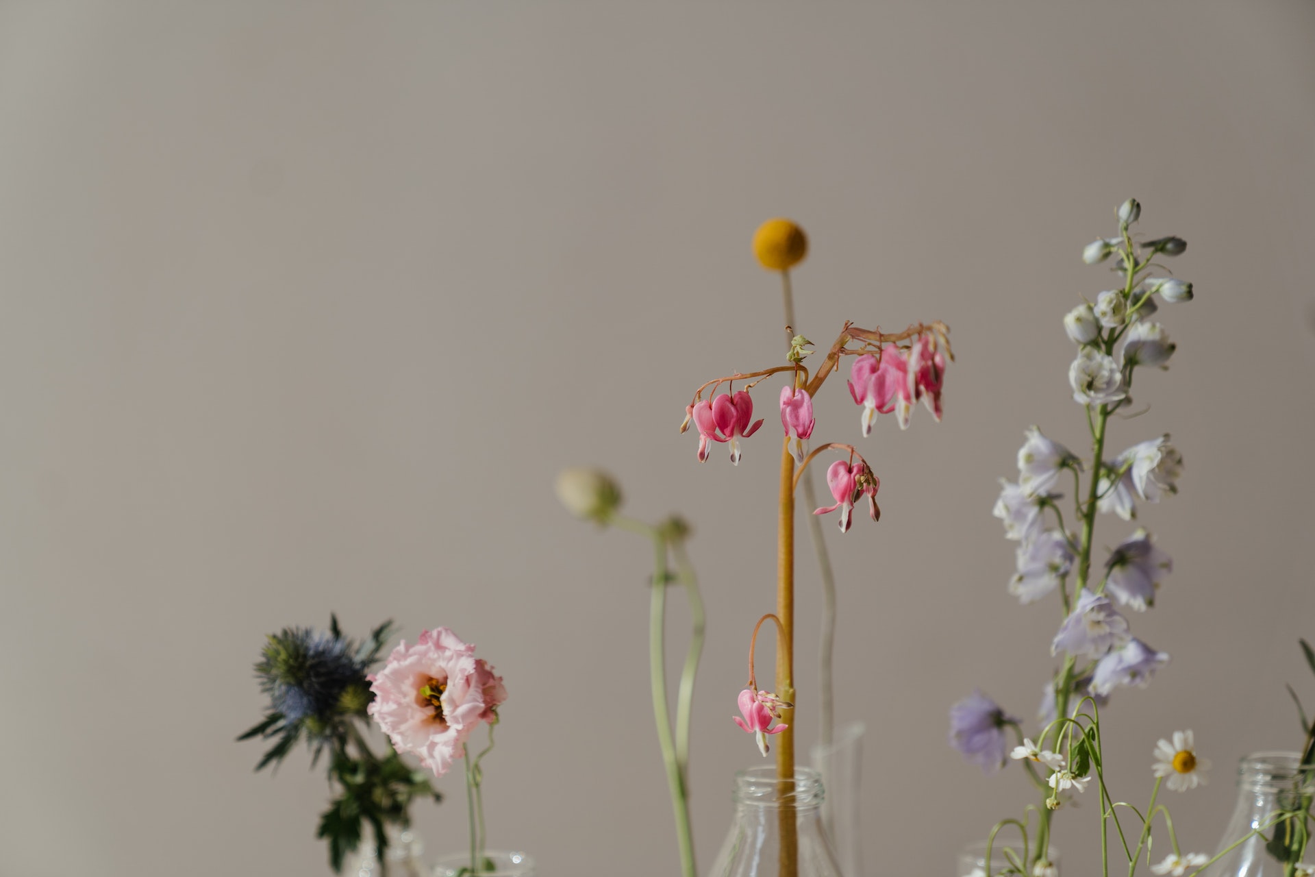 A warm arrangement featuring autumn flowers like chrysanthemums, sunflowers, and vibrant fall leaves.